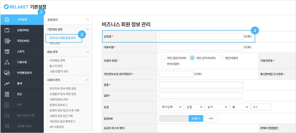 상호명이 변경되었을 경우에는 비즈니스 회원 정보 관리를 통해 내용 수정이 가능합니다.